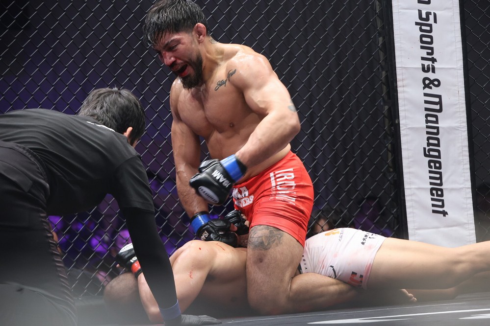 サウスポーの木下が距離を詰めると、バレンズエラが右に回る。木下は左ハイ。バレンズエラの右ミドルをキャッチする。ケージを背負ったバレンズエラの顔面に、スイッチして右を突き刺す。サウスポーに戻した木下は左三日月を入れたあと、ケージ際で左ミドルを当てる。組んだバレンズエラが離れてケージ際から脱した。木下は左ハイ&スイッチから右を振るう。ワンツーを打ってプッシュでバレンズエラをケージに追い込む木下。バレンズエラの右ローをすくって右フックを当てるが、ローが下腹部に入ったようでレフェリーが試合を中断。しかし木下はすぐ試合再開に応じる。